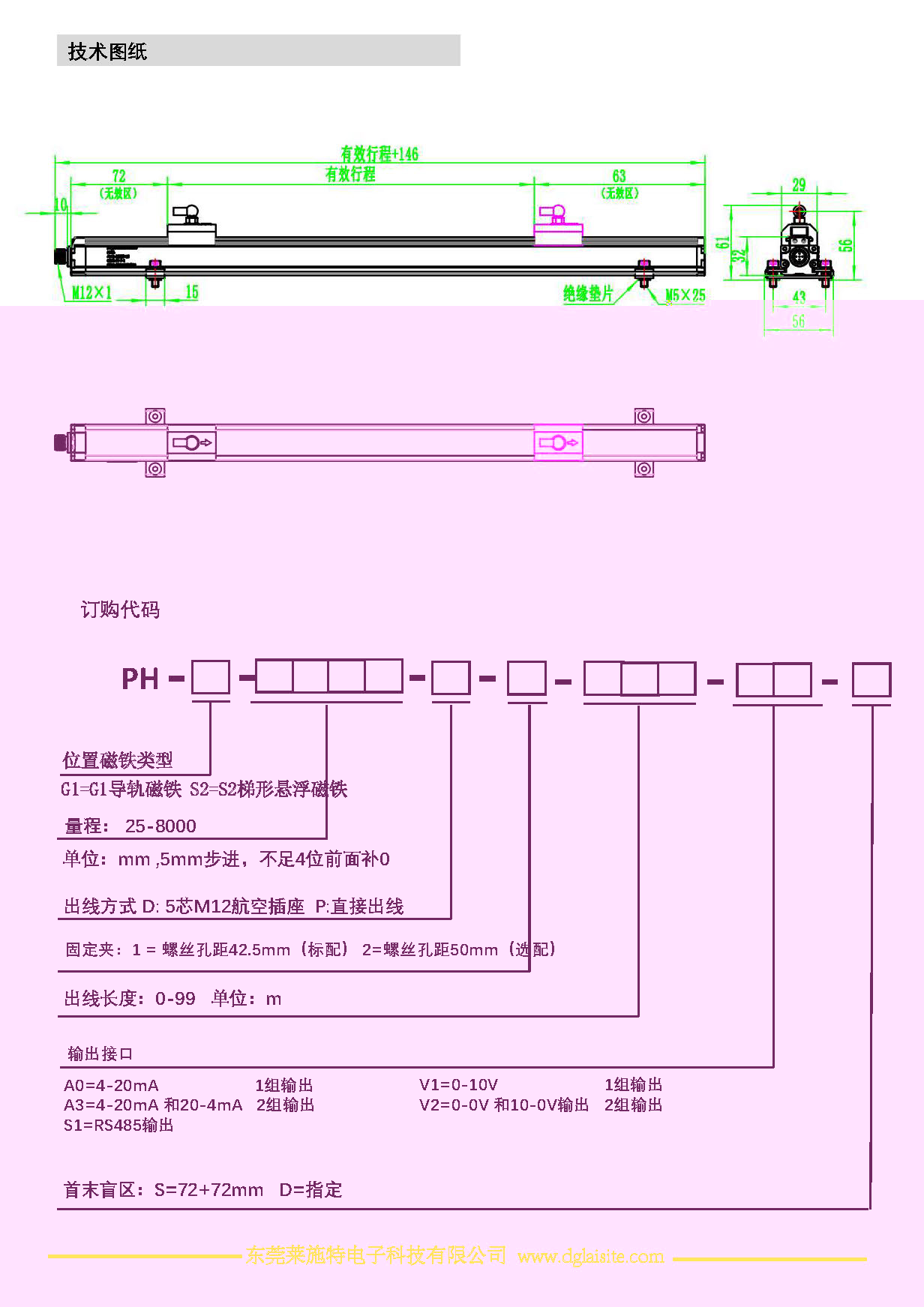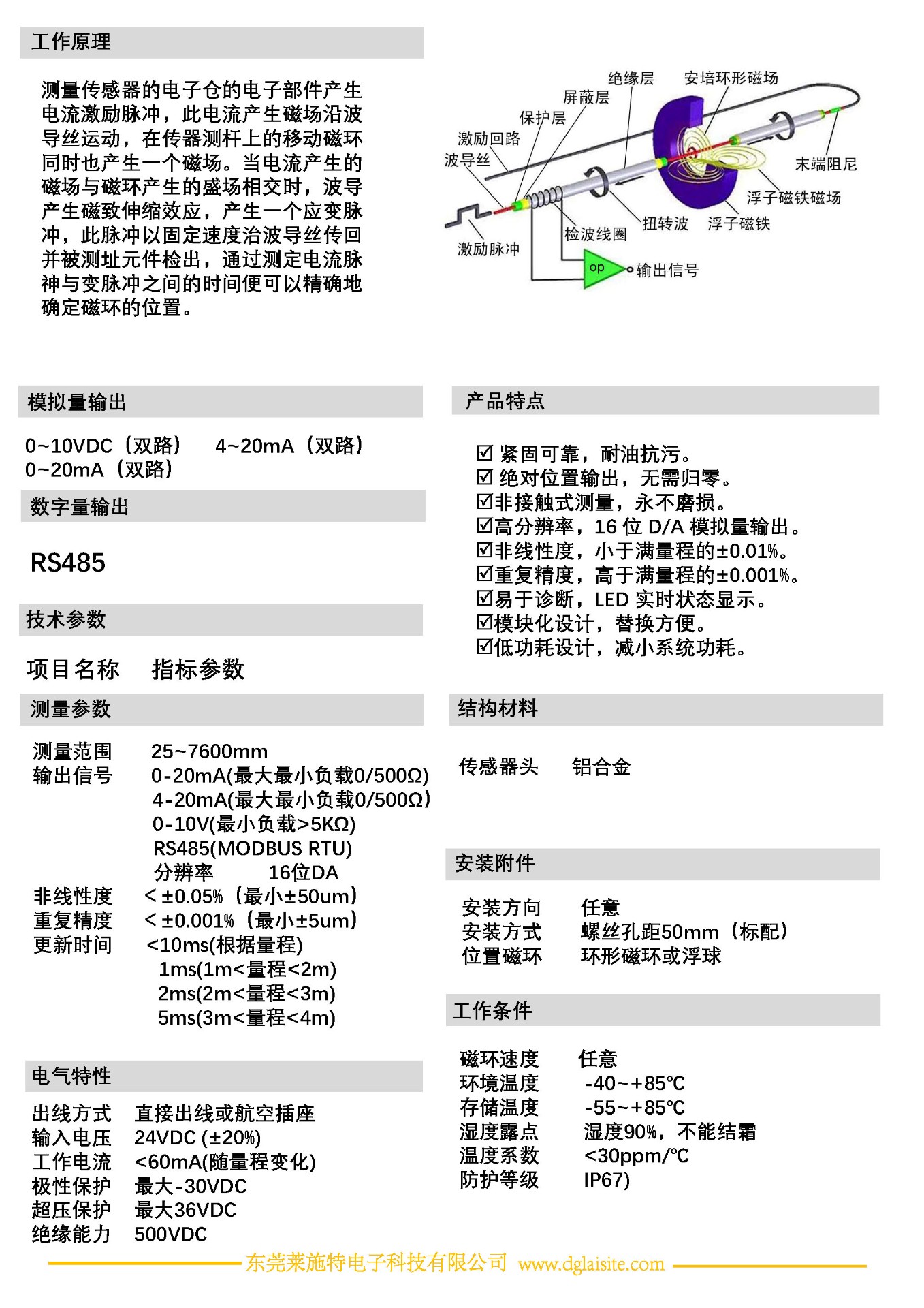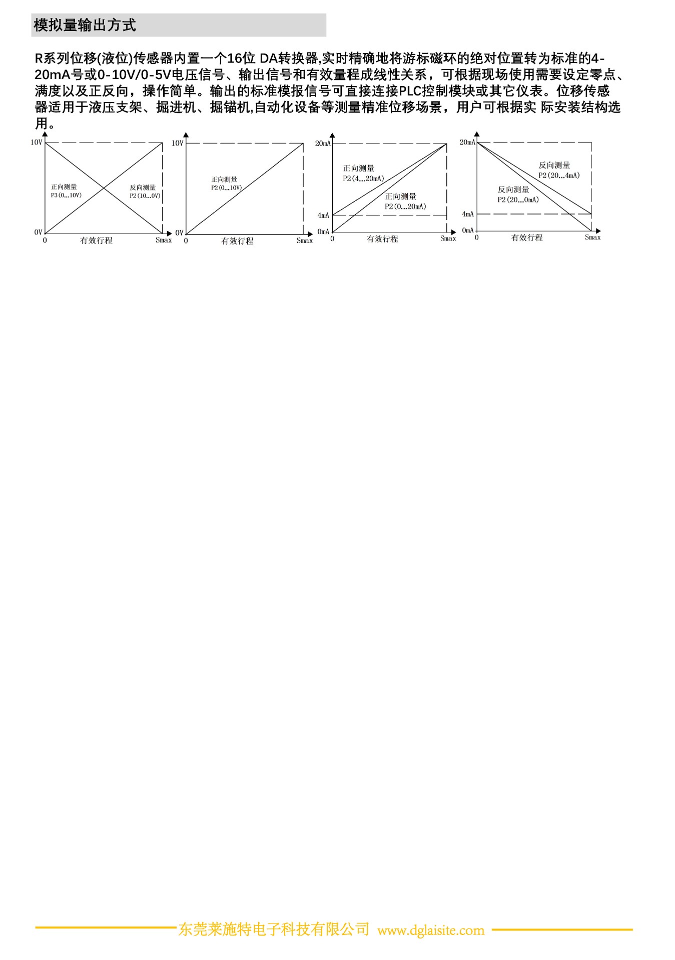 R系列位移(液位)传感器内置一个16位DA转换器,实时精确地将游标磁环的绝对位置转为标准的4-